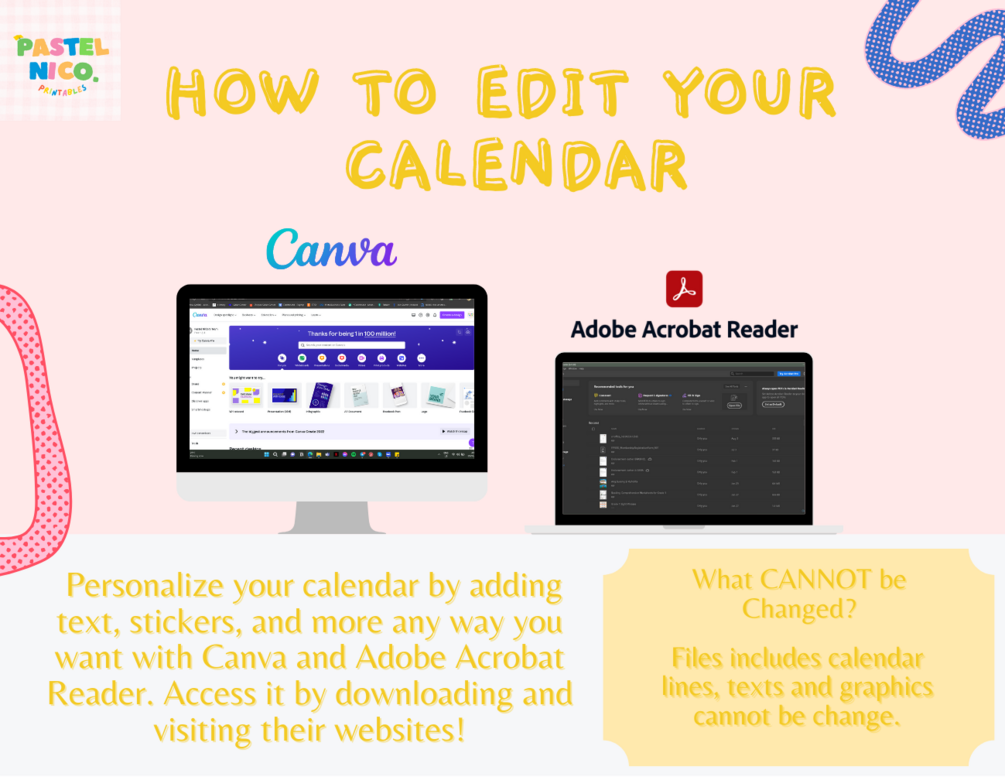 🔸Calendar design and elements cannot be changed.